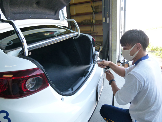 お客様にご安心して教習に取り組んでいただけるよう、コロナウィルス感染予防策として、教習車・送迎バス全車に対して除菌・抗菌処理をおこなっております!