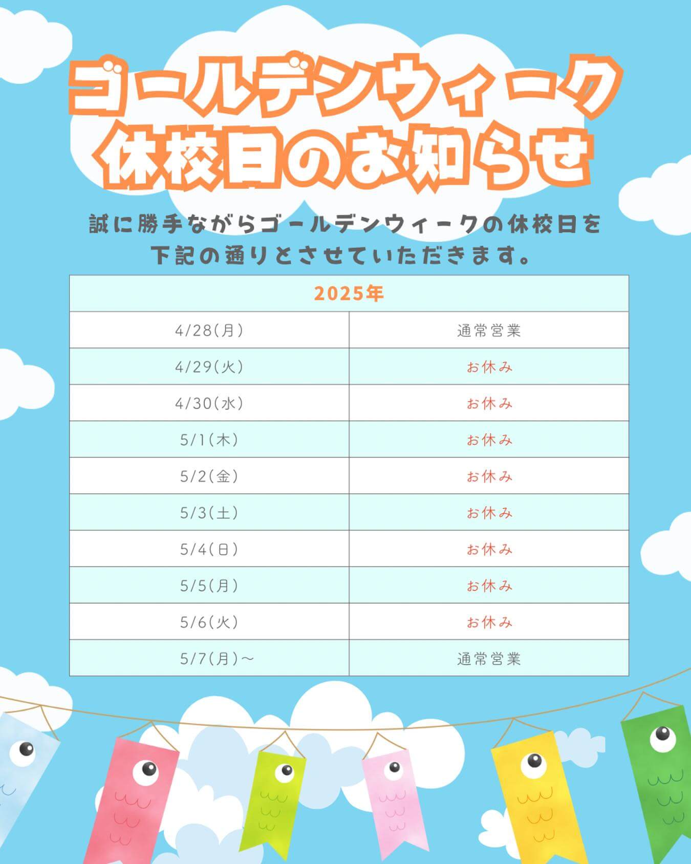 2025.04.28お知らせゴールデンウイークの休校日について