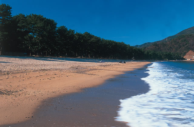 敦賀湾最奥部に広がる気比の松原は「三保の松原」「虹の松原」と並ぶ「日本三大松原」の1つに数えられています。約17,000本の赤松・黒松が入り交じる風景が約40万平方メートルも広がり、海水浴はもちろん、季節ごとに変わる美しさで、訪れる人の目を楽しませてくれます。
